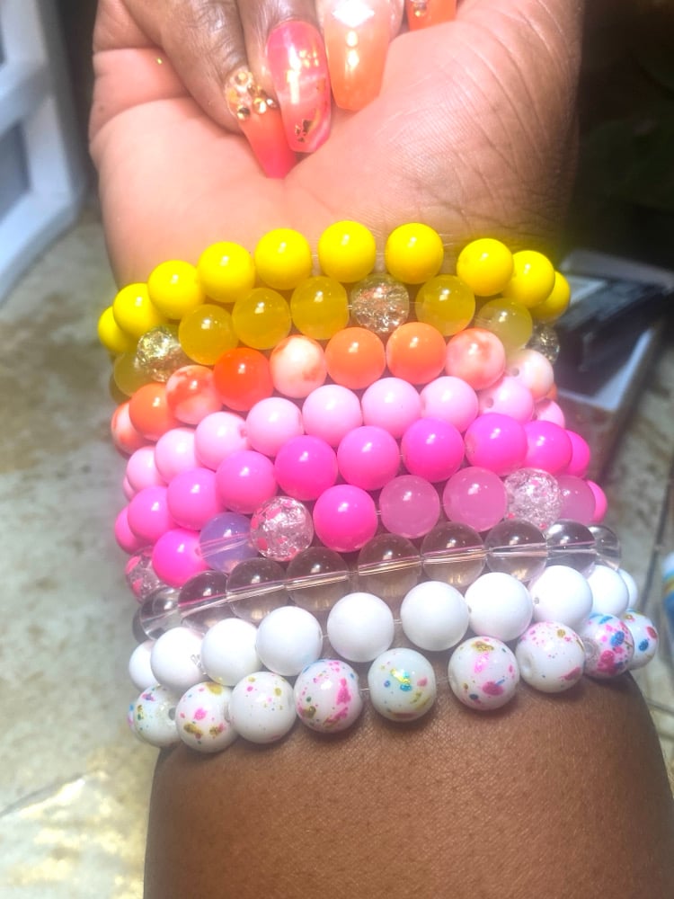 You will receive a total of 6 beaded bracelets randomly selected by me!