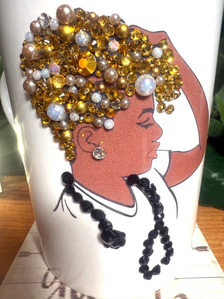 This cutie is one of my favorites! This ceramic 14 oz bling mug has just the right amount of bling to add to any scene!