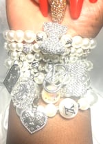 This pearl 7 pc stack is the icing on the cake when it comes to completing that perfect look. Rather you choose to wear 3 or all 7 your wrist will thank you. Size medium.