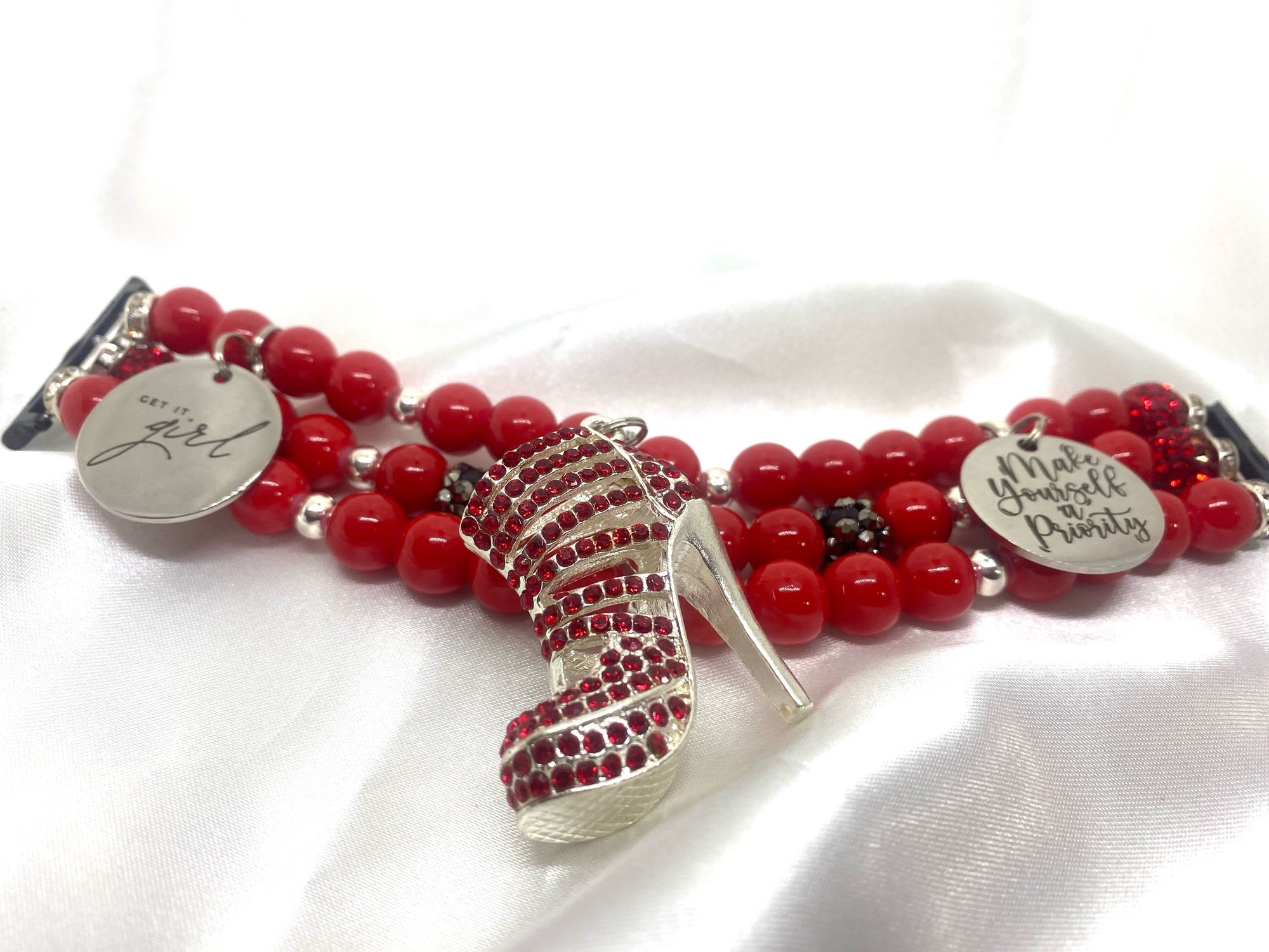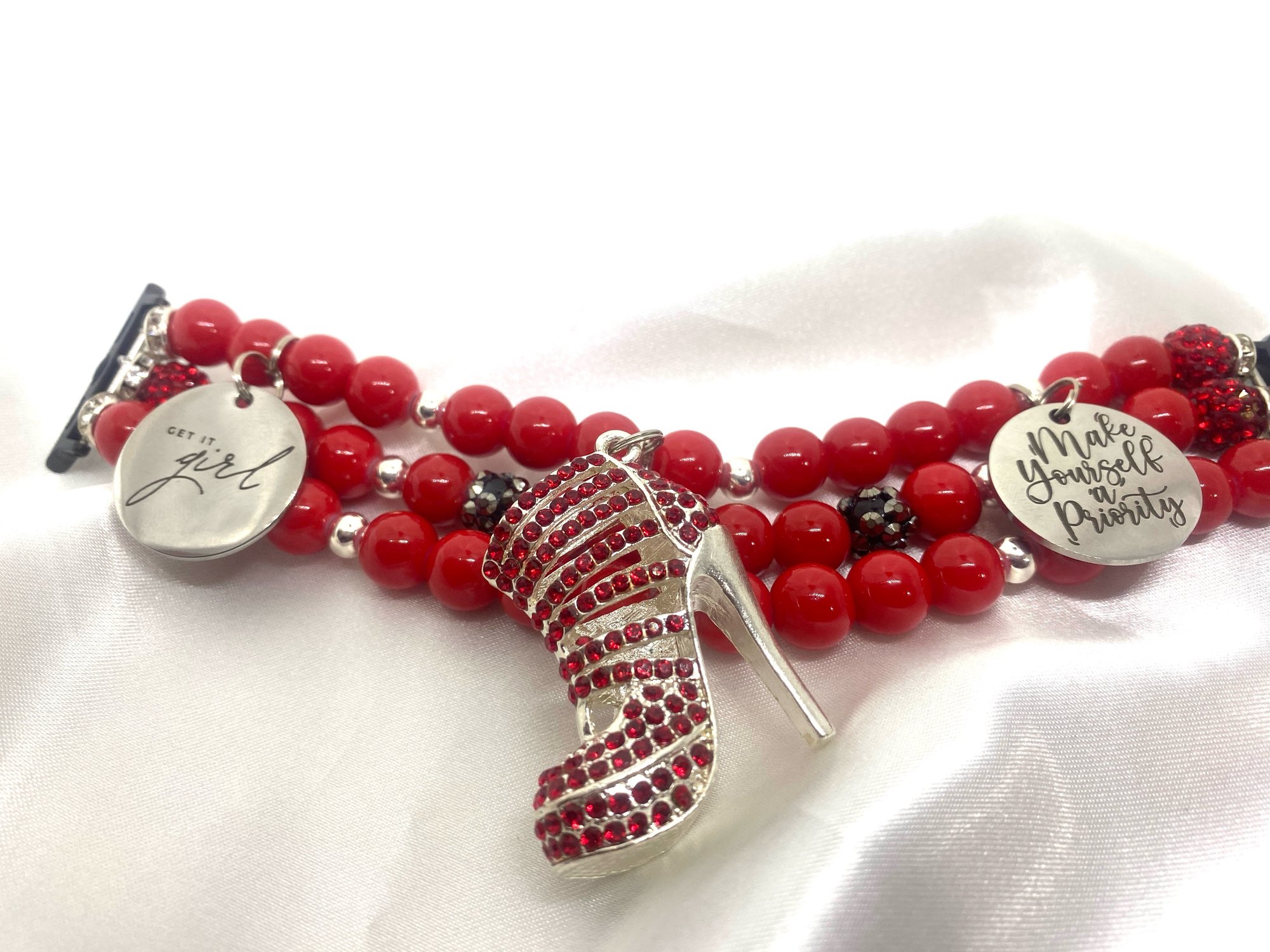 All bands are measured to be 7 inches in length. This length DOES NOT include the length of the watch. Please measure your wrist to get an accurate measurement. Feel free to contact me directly for custom sizes. Bands are never duplicated and beads and charms vary.