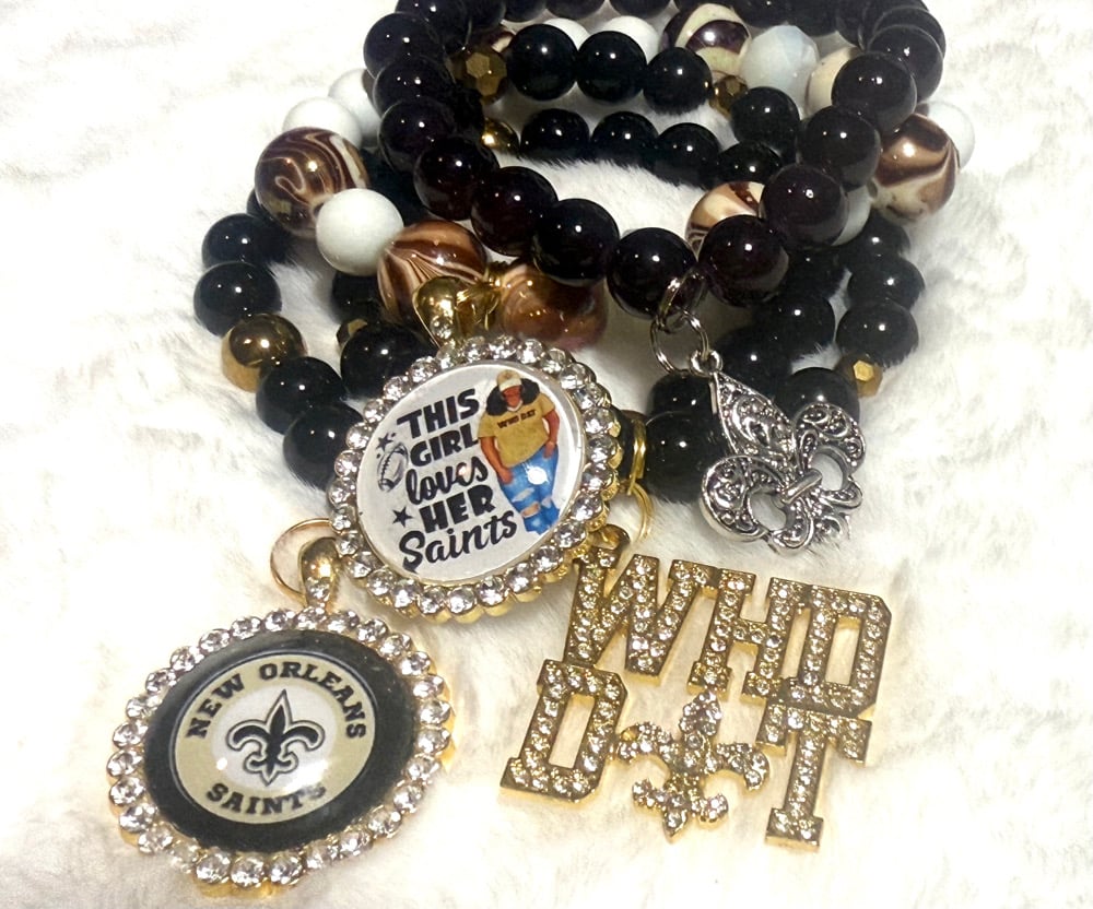 Show your love for the black and gold with a bracelet stack that turns heads on and off the field💛🖤